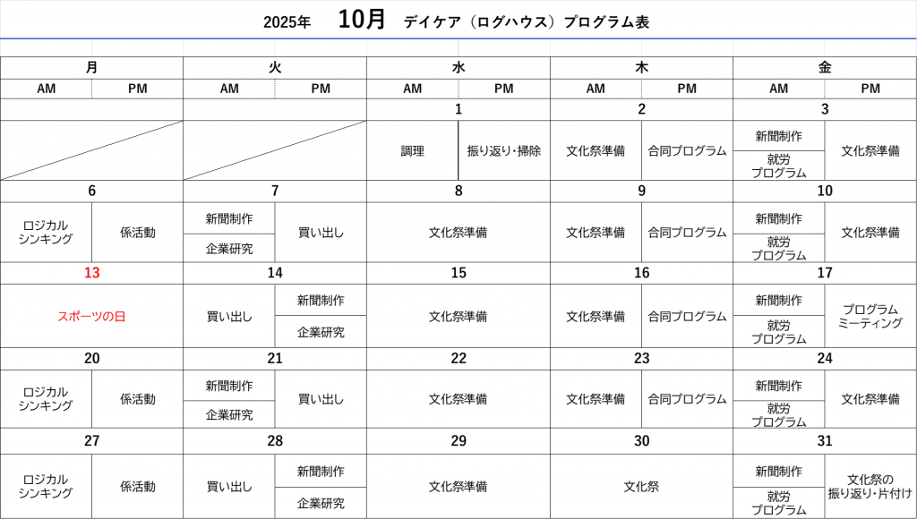 10月のホップアップデイケアとしゅう吉のプログラムです。